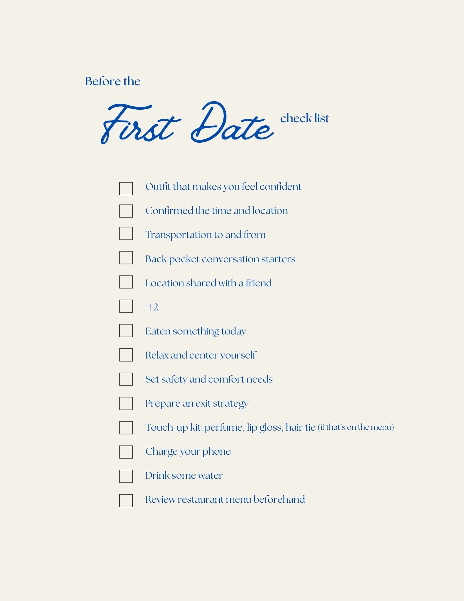 Download this free PDF which includes a checklist for your next first date and dopamine menu for your next solo night in.